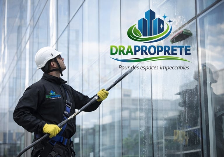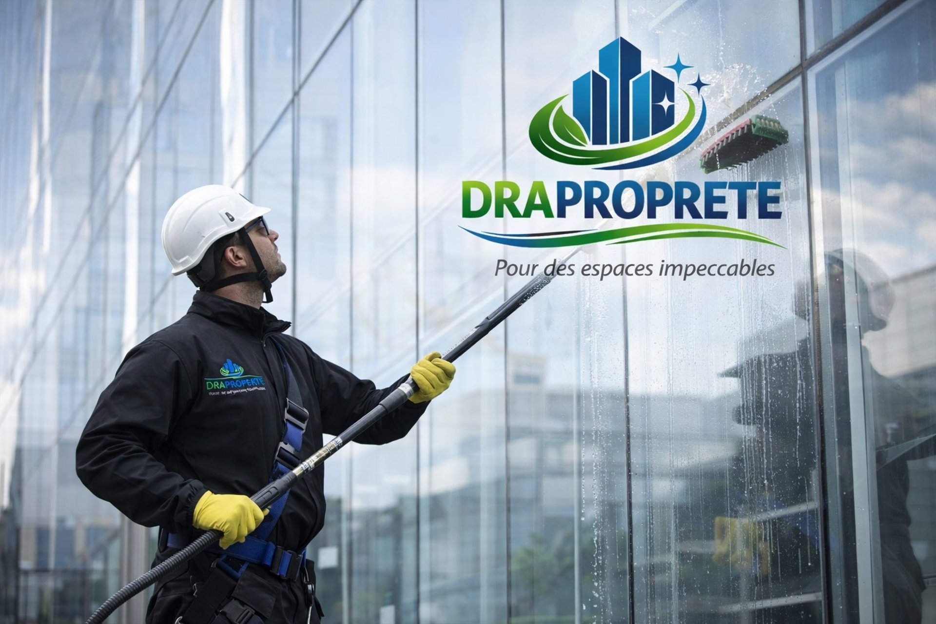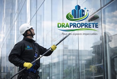 Nettoyage professionnel de vitres et façades, même en hauteur.